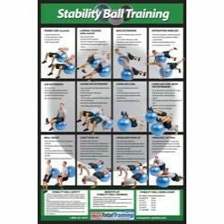 Get the Stability Ball Training Poster, which features 12 stability ball exercises and shows the starting and finishing position of each along with bullet point instructions for proper execution. Laminated. Color. 24″ x 36″.