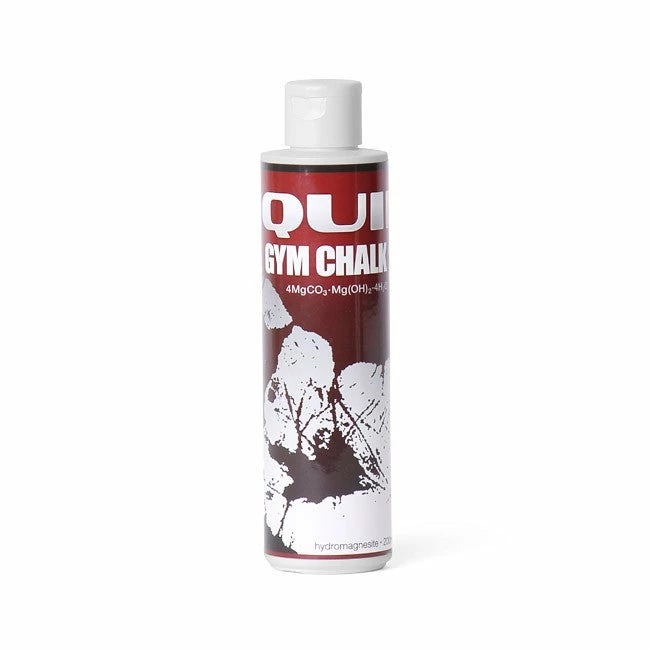 Liquid chalk is Magnesium Carbonate in a quick-dry alcohol solution. Apply it on your hands, let it dry, then go work out. Forget gloves, chalk is your friend when it comes to covering your hands in the gym. Gloves will increase the circumference of your grip and therefore make it more difficult to hold onto the bar when the weights get heavy. Chalk, on the other hand, will allow you to pick up more than your grip allows, meaning you wont be limited in how much you’re capable of lifting by your grip.