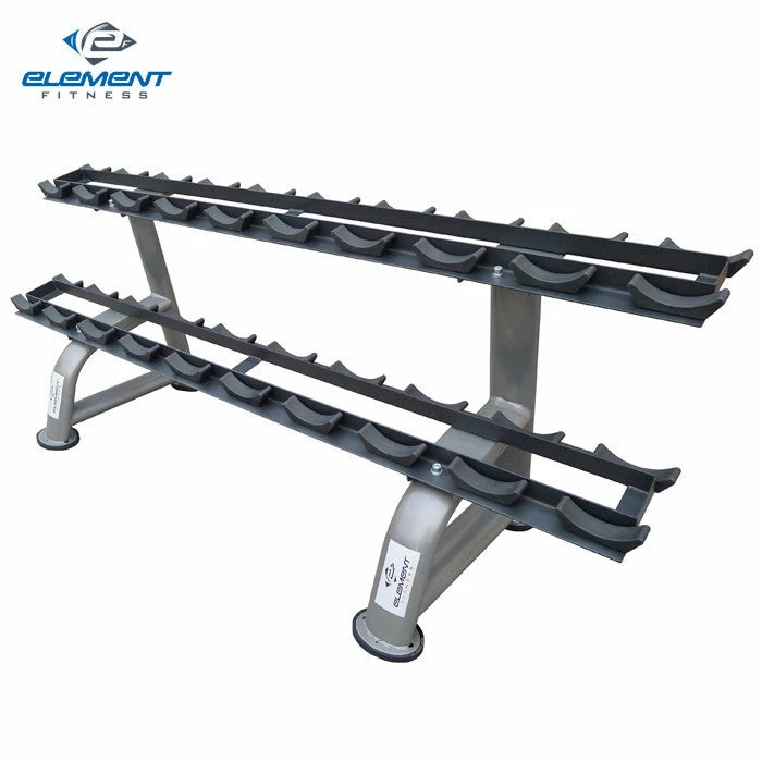 Element’s 10 Pair Dumbbell Rack is a two-tiered, commercial dumbbell rack designed for Element Round series dumbbells as well as any round head dumbbells. Protective rubber-encased dumbbell saddles protect the dumbbells from excessive wear and tear. This rack is great for organizing your dumbbells and keeping your workout area clear!