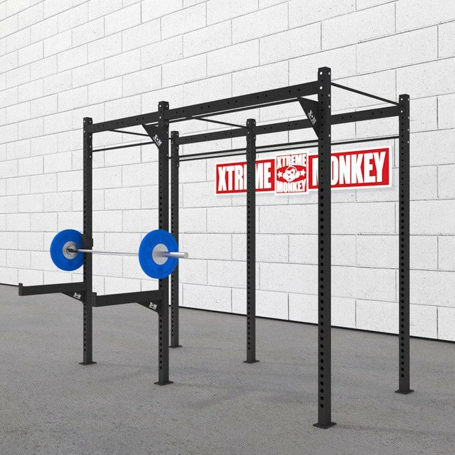 The XM 10-4 V2 Free Standing rig is one of the most popular rig gonvifurations you can get. This design allows up to two 4′ squat stations and 1 x 6′ chin up, suspension training and funcitonal training stations. The add-on on the V2 is the triple cross bar and the safety arms